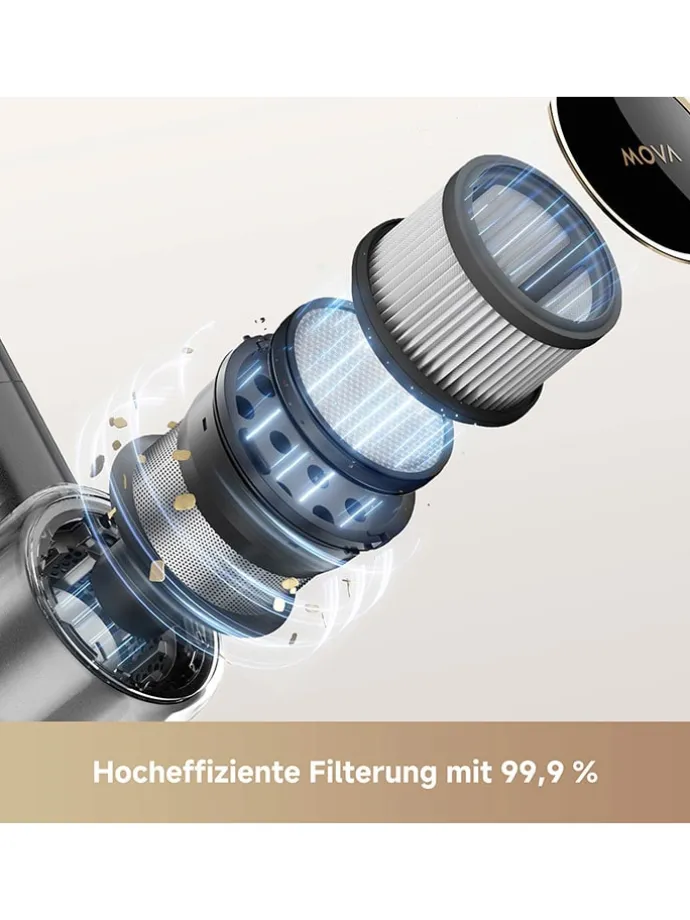 – hocheffizientes Filtersystem entfernt 99,9 % der Partikel bis zu 0,3 µm – ideal für Allergiker