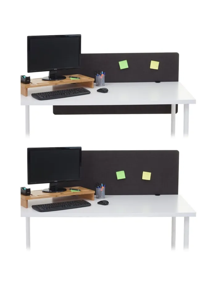 Dieses vielseitige Tischelement eignet sich für Arbeitsräume wie zum Beispiel einem Büro oder einem Klassenraum, in welchem man den Geräuschpegel reduzieren und ein besseres Arbeitsklima schaffen möchte, um die Konzentrationsfähigkeit zu steigern. Hier kann die Trennwand auch zusätzlich als Nies- und Hustenschutz zum Einsatz kommen. Zudem sorgt die moderne Schallwand für mehr Privatsphäre zwischen zwei Arbeitsplätzen an Ihrem Schreibtisch. Die Anbringung der Trennwand kann an zwei unterschiedlichen Positionen befestigt werden. Durch ihr unaufdringliches Design lässt sich die Klemmtrennwand in Ihre bestehende Einrichtungen bestens integrieren.