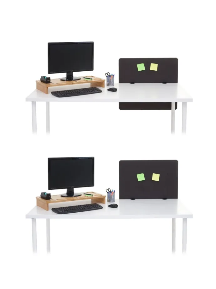 Dieses vielseitige Tischelement eignet sich für Arbeitsräume wie zum Beispiel einem Büro oder einem Klassenraum, in welchem man den Geräuschpegel reduzieren und ein besseres Arbeitsklima schaffen möchte, um die Konzentrationsfähigkeit zu steigern. Hier kann die Trennwand auch zusätzlich als Nies- und Hustenschutz zum Einsatz kommen. Zudem sorgt die moderne Schallwand für mehr Privatsphäre zwischen zwei Arbeitsplätzen an Ihrem Schreibtisch. Die Anbringung der Trennwand kann an zwei unterschiedlichen Positionen befestigt werden. Durch ihr unaufdringliches Design lässt sich die Klemmtrennwand in Ihre bestehende Einrichtungen bestens integrieren.