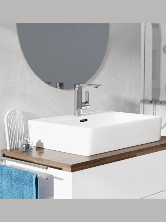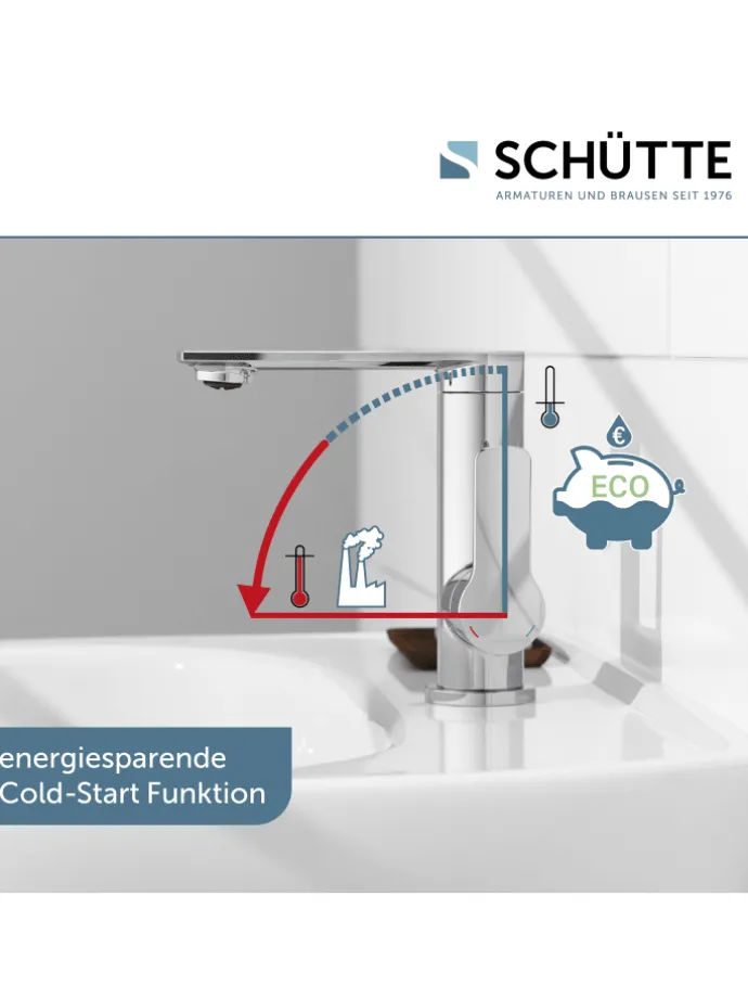 Ressourcenschonend handeln auch im Kleinen? Dann ist diese Einhebel-Mischbatterie mit Cold-Start Technik genau richtig, denn sie gewährt bei senkrechter Position des Bedienhebels nur den Zufluss von Kaltwasser. Bei vielen Waschgängen völlig ausreichend.