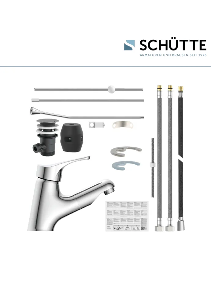 Im Lieferumfang enthalten ist ein vollständiges Montageset und eine mehrsprachige, bebilderte Montageanleitung. Die korrosionsbeständigen Anschlussschläuche (400 mm) an das Hauswassersystem sind flexibel und leicht zu montieren.