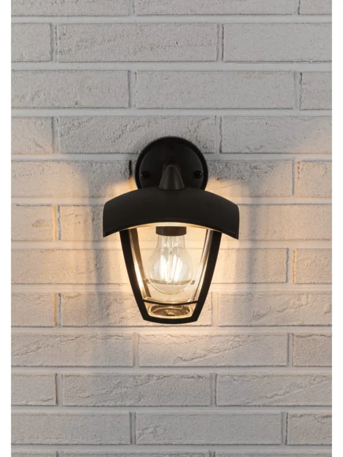 Außenwandleuchte Classic Curved IP44 164x225mm max. 12W 230V Klar#Schwarz Kunststoff