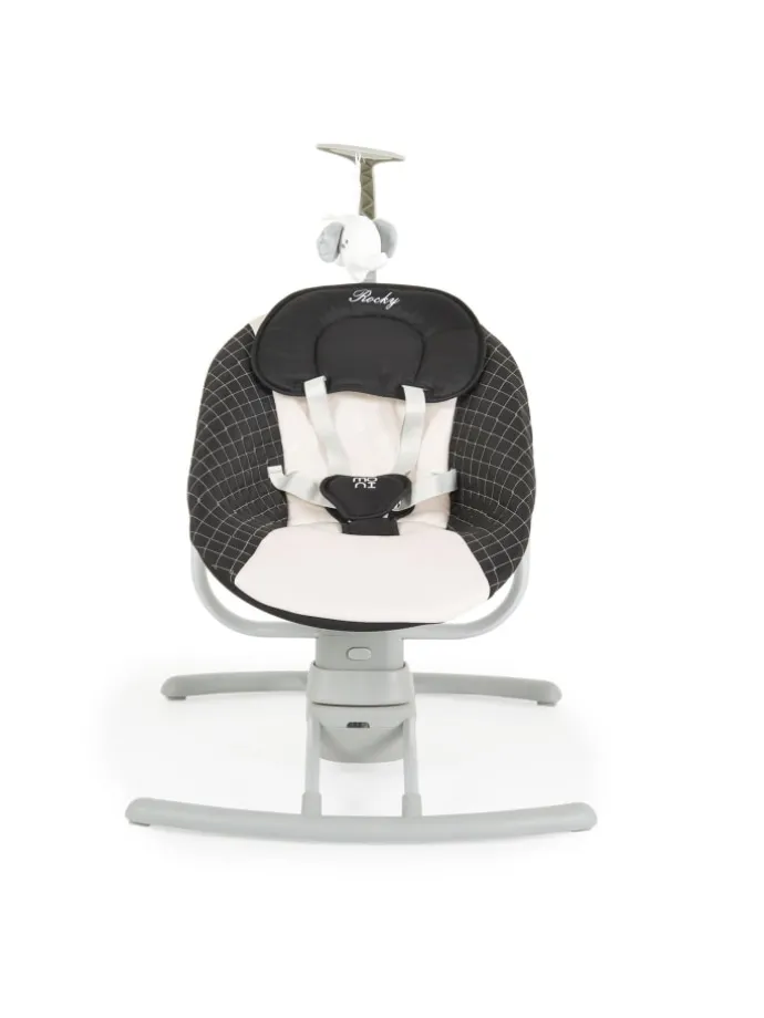 Die elektrisch Babywippe Rocky von Moni wird ab sofort der Lieblingsplatz Ihres Babys sein. So können Sie Ihrem Baby bereits ab Geburt immer die bequemste Position ermöglichen. Mit drei verschiedenen Geschwindigkeitsstufen wird Ihr Kind dank der geräuschlosen Schaukelbewegungen sanft einschlafen. Die Wippe verfügt über eine Musiktafel mit 8 Melodien sowie einem interaktiven Spielbogen mit einem Stofftier. Ein zusätzliches Kopfkissen und das weiche Sitzpolster sorgen für einen optimalen Liegekomfort für Ihren kleinen Liebling.