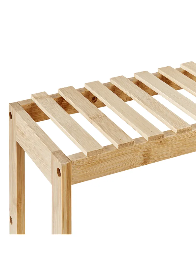Robustes, schmales Bambus-Badezimmerregal zum Aufhängen. Dieses Badezimmer-Wandregal mit 3 schmalen Ablagen ist aus hellem Bambusholz gefertigt, das für seine Robustheit und hohe Feuchtigkeitswiderstandsfähigkeit bekannt ist. Die Regalablagen bieten genügend Stauraum für Handtücher, Toilettenartikel sowie Dekoartikel und sind damit eine praktische Ergänzung für jedes Badereich. Die natürliche Bambusholz-Oberfläche verleiht dem Raum einen warmen und einladenden Look, während das Wandregal selbst nicht nur einfach zu installieren, sondern auch pflegeleicht ist. Zudem können Sie während der Montage selbst bestimmen, in welcher Höhe Sie jede der Ablagen anbringen.