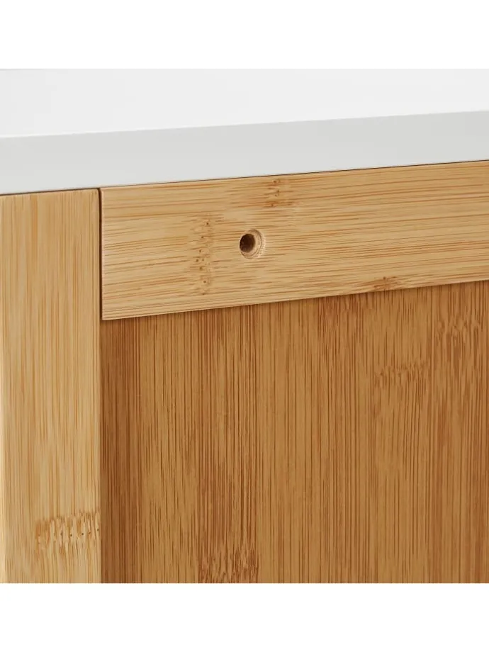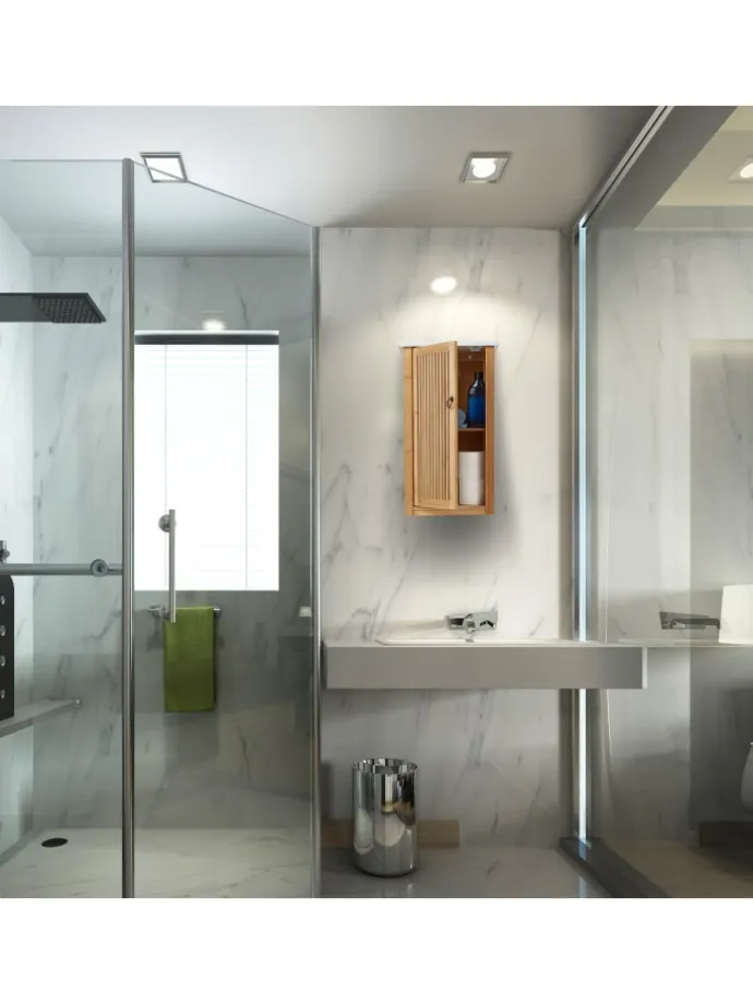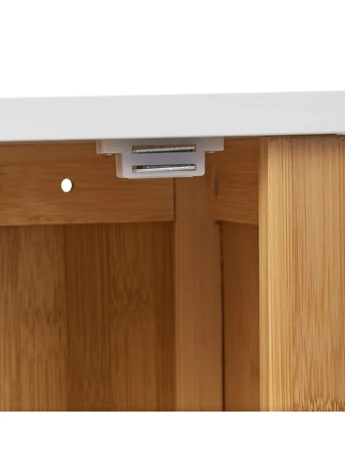 Du möchtest zusätzlichen Stauraum in Deinem Bad, der Küche oder dem Flur? Dieses kompakte Hängeschränkchen gibt ihn Dir. Mit seinen schmalen Maßen und dem verstellbaren und herausnehmbaren Regalboden bietet der Badwandschrank viel Platz für kleine und größere Utensilien. Die Tür des Badezimmerhängeschranks aus natürlichem Bambus ist im schicken Lamellen-Design gehalten und verfügt über einen Magnetschließmechanismus, der den Hängeschrank sicher verschlossen hält.