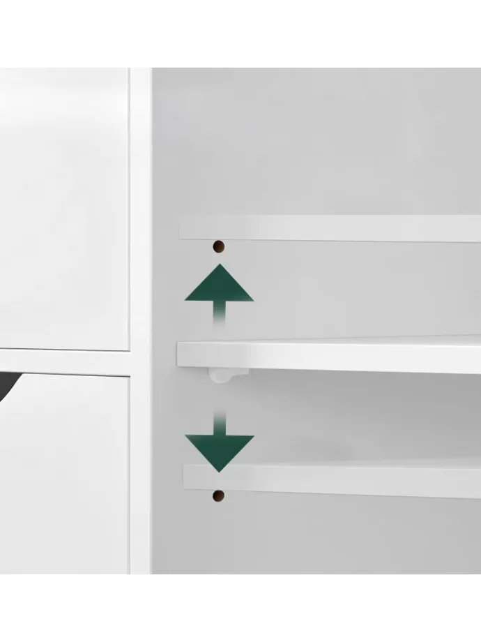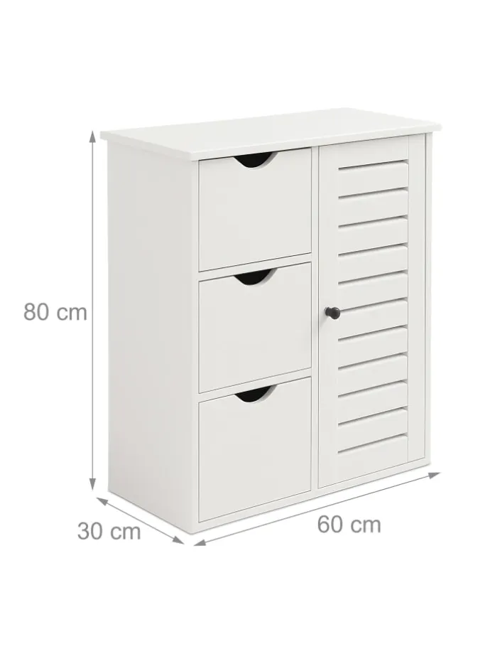 Das kompakte Schränkchen eignet sich ideal zur Aufbewahrung von Kosmetikartikeln im Badezimmer, macht aber auch als Flurschrank für Accessoires oder als Küchenschrank für Vorräte eine gute Figur. Platzsparend und doch geräumig bietet die Badezimmerkommode in 3 Schubladen und 3 Schrankfächern ausreichend Stauraum. Die Höhe der Fächer ist durch die Einlegeböden flexibel wählbar. Dank des cleveren Magnetverschlusses bleibt die Schranktür stets sicher verschlossen.