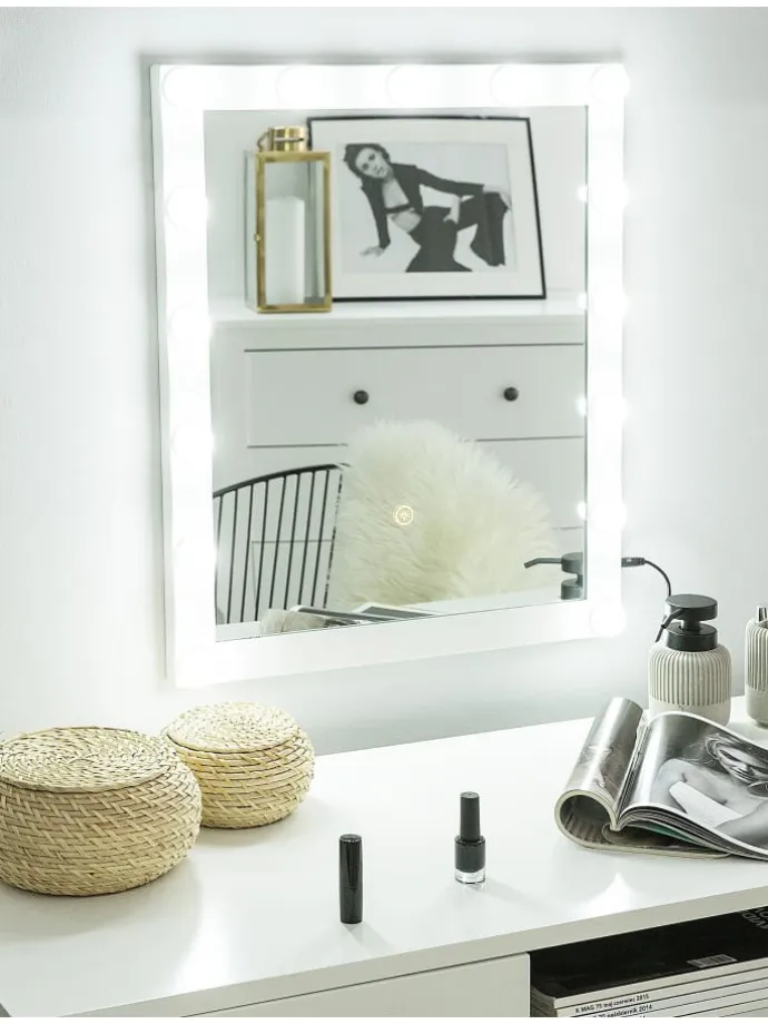 Rechteckiger, weißer Wandspiegel mit Beleuchtung. Ob in Schlafzimmer über dem Schminktisch oder im Badezimmer über dem Waschbecken, dieser Spiegel in klassischer Form wird überall zum praktischen Wohnaccessoire. Dank der LED-Beleuchtung im Rahmen wird das Make Up, die tägliche Gesichtspflege oder das Rassieren zum Kinderspiel. Der Touch-Sensor sorgt für eine einfache und schnelle Regulierung der Lichtstärke.