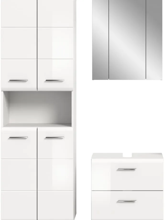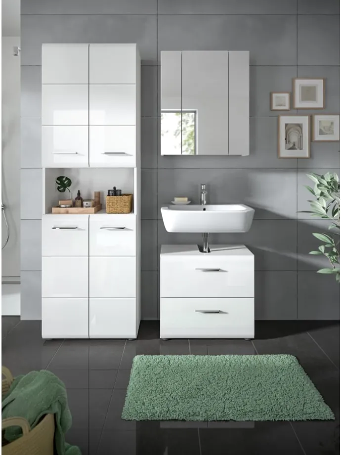 Badkombination in Weiß/Weiß Hochglanz – (B) 135 x (H) 185 x (T) 30