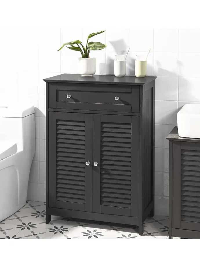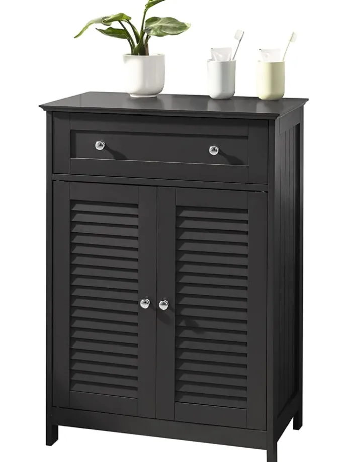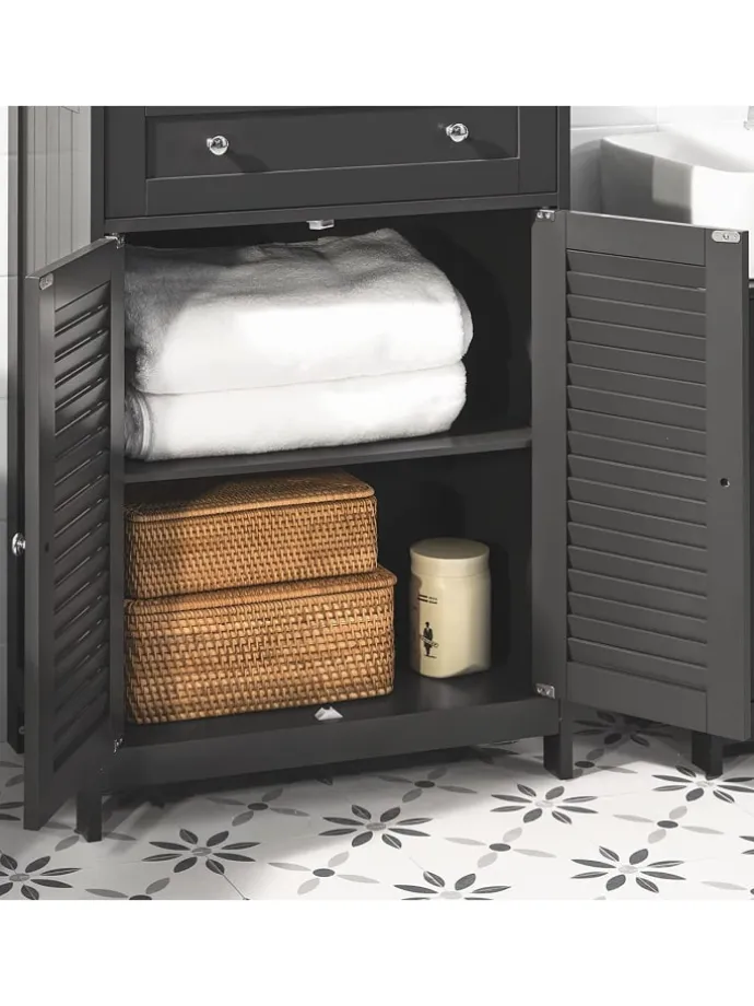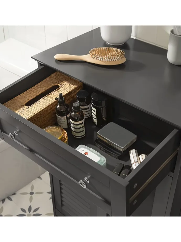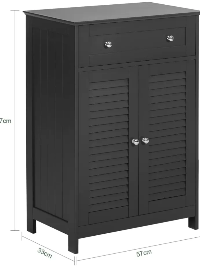 Ausgestattet mit 2 Türen sowie einer Schublade, biete diese Kommode viel Stauraum für z.B. Handtücher, Putzmittel oder Utensilien des täglichen Gebrauchs.