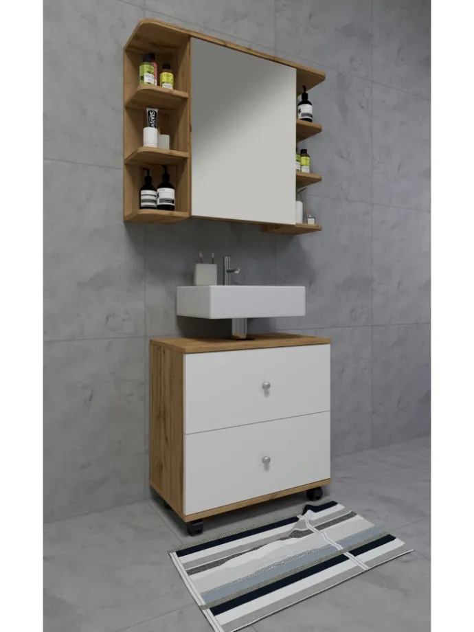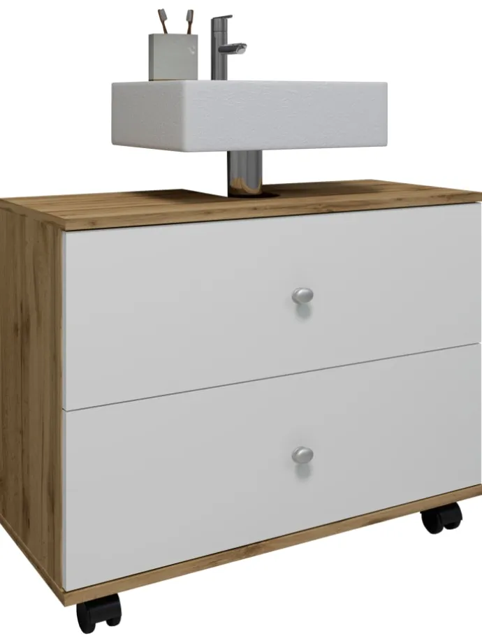 Der Waschbeckenunterschrank kann mit weitere Badmöbeln der Serie „VCM Nilosi“ ergänzt werden.