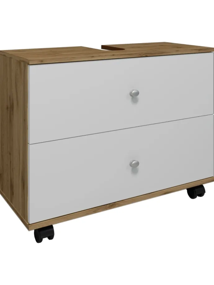 Der Waschbeckenunterschrank „Nilosi L“ passt durch das zeitlose Design in fast jedes Badezimmer.