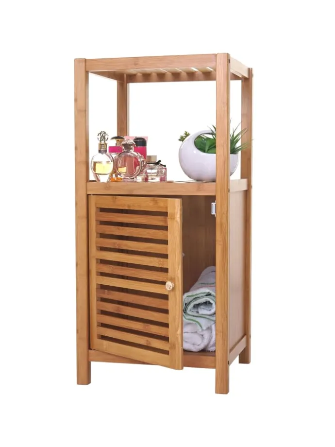 Bambus ist das ideale Material für Ihr Bad, denn es saugt kein Wasser auf, ist äußerst robust und dabei wenig kratzanfällig. So haben Sie lange Freude an dieser tollen Bambus Serie. Naturprodukte, die sich optimal in jedes Badezimmer einfügen. Die Hygiene ist zusätzlich gesichert, denn die Schränke können schnell und einfach feucht abgewischt werden. Das Plus an Nachhaltigkeit: Im Gegensatz zu Holz, ist Bambusgras ein sehr schnell wachsender Rohstoff und bietet neben den vorzüglichen Eigenschaften die gleichen optischen Vorteile. So sorgen diese Regale oder Schränke für eine sprichwörtliche Natürlichkeit in Ihrem Badezimmer.