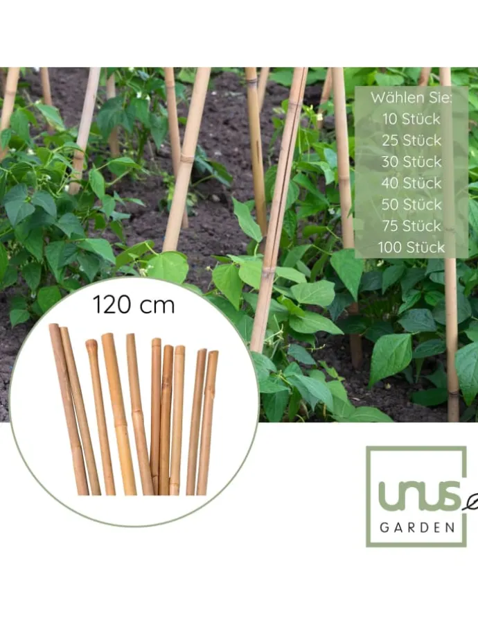 Dabei ist es ganz egal ob Tomaten-, Gurken- oder Bohnenpflanzen, die Pflanzstäbe aus Bambus sind für jede