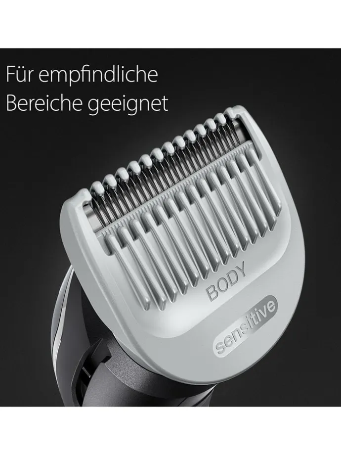 – SkinShield-Technologie und der Sensitiv-Kammaufsatz schützt die Haut, sogar in empfindlichen Bereichen