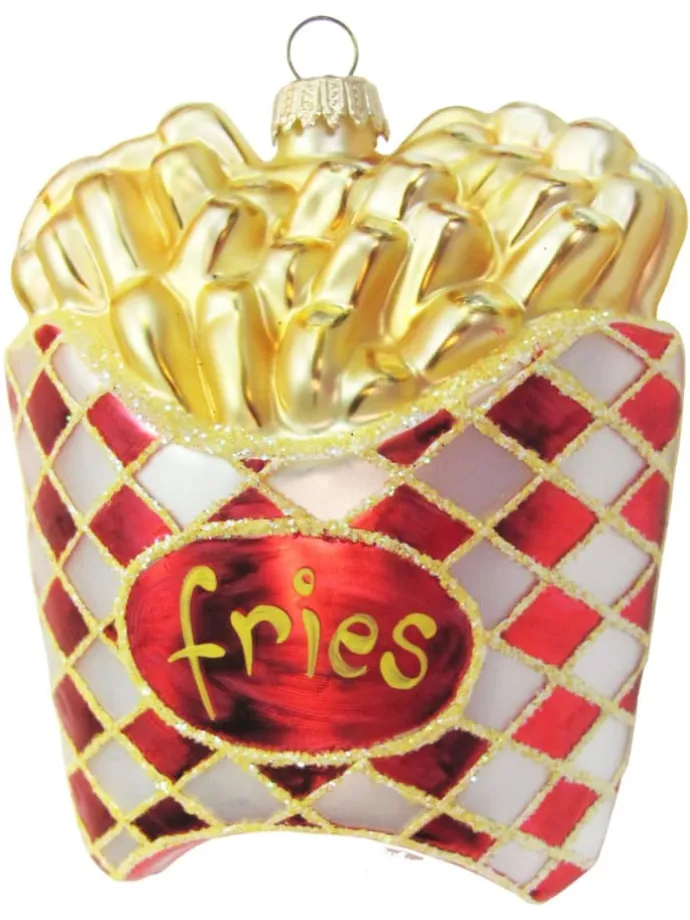 Tüte Pommes Frites aus Glas 10 cm mundgeblasen und handekoriert