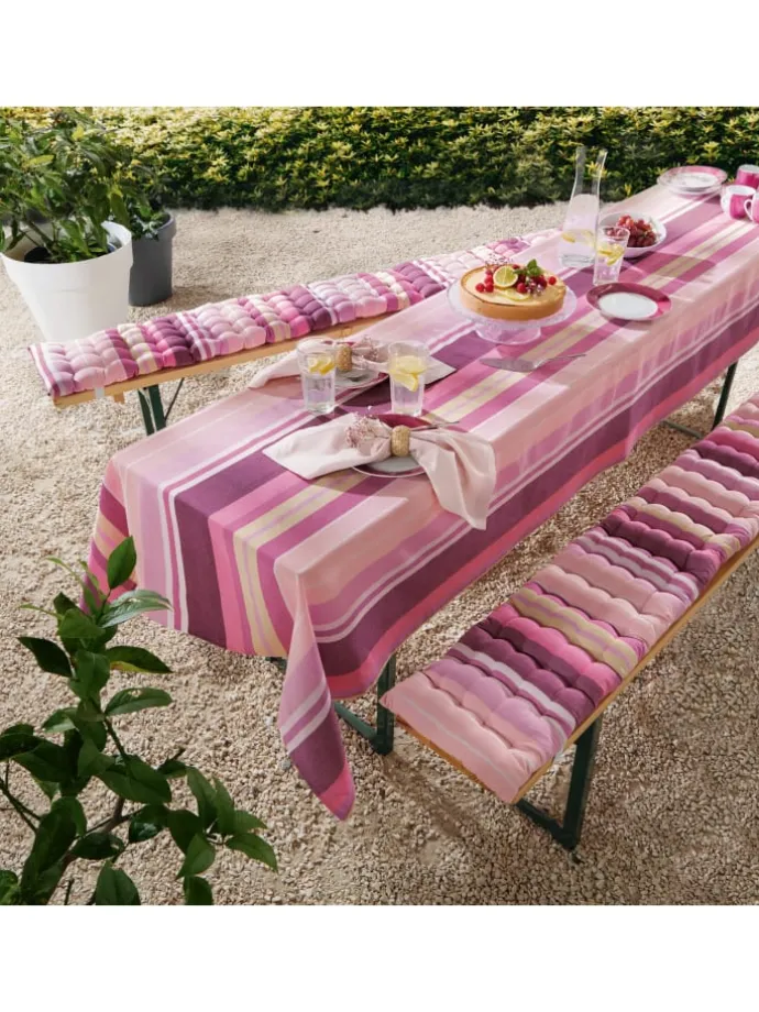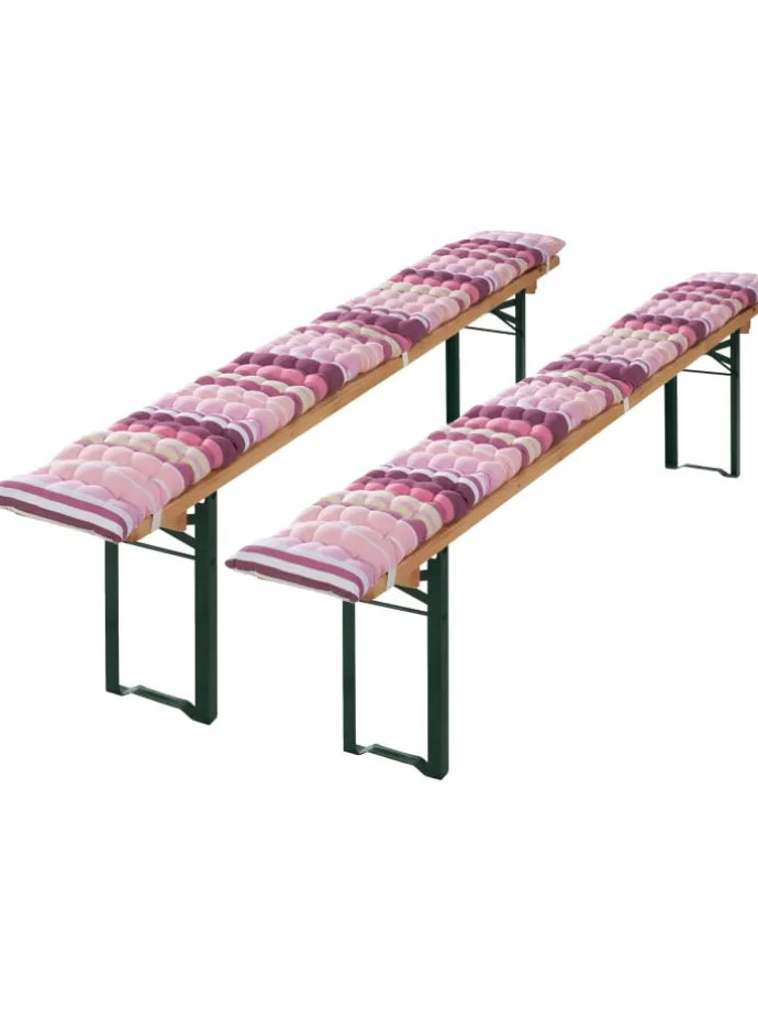 REDBEST Bierbank-Auflage im 2er-Pack. Mit dieser Serie verpassen Sie Ihrem Zuhause ohne viel Aufwand einen neuen Look. Das buntgewebte Streifenmuster zeigt sich im unterschiedlichen Verlauf, was besonders charmant und erfrischend wirkt. Ob Gartenparty, Geburtstagsfeier oder Grillabend, durch die bequeme 6 cm hohe Auflage wird die rustikale Bierbank einladend und gemütlich. Sie ist weich mit Polyester gefüllt und versteppt. Einfaches Befestigen durch elastische Gummibänder. Oberstoff aus robustem, glattem Gewebe, strapazierstark und langlebig.