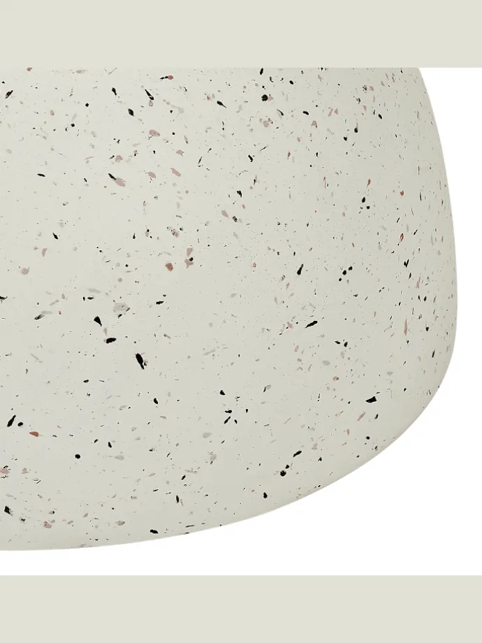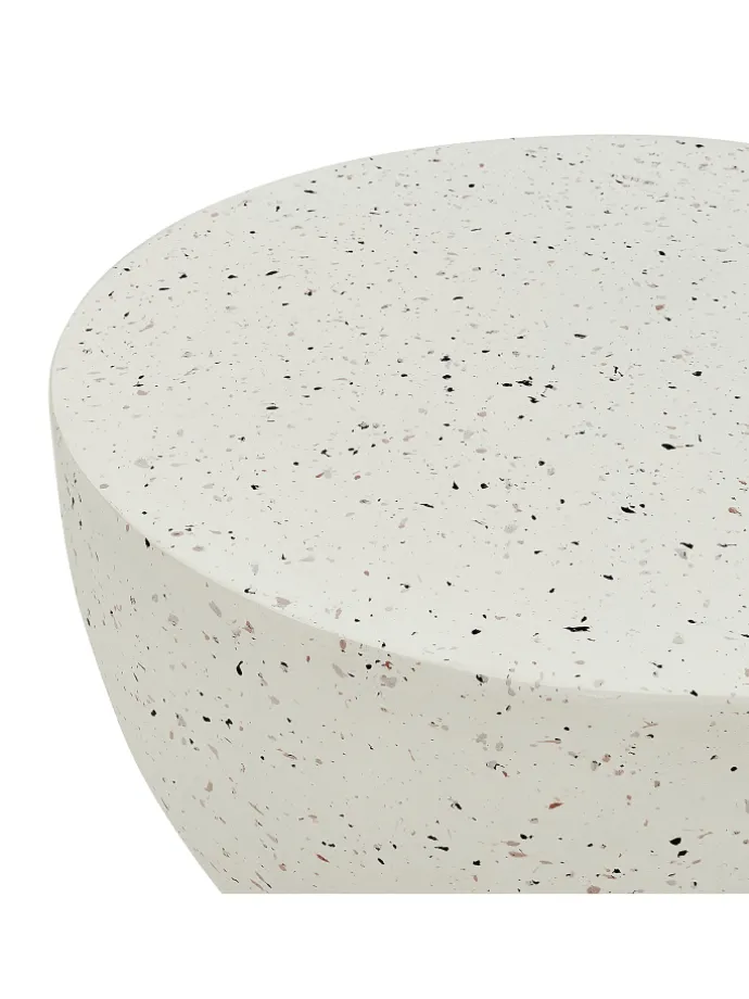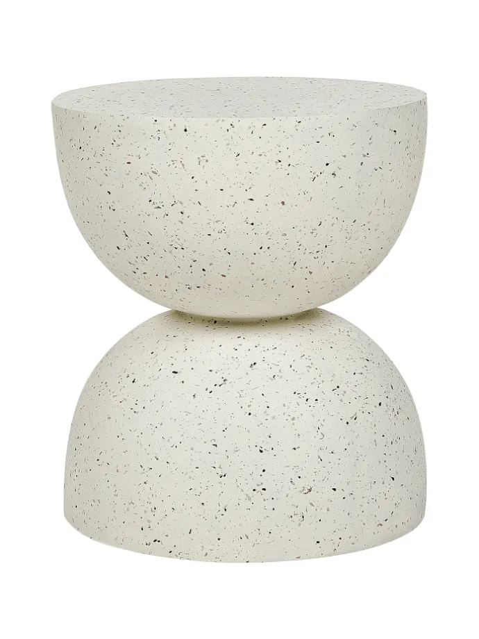 Moderner, cremeweißer Couchtisch aus Beton in trendiger Sanduhrform. Brauchen Sie noch einen robusten, langlebigen, dennoch vielseitigen und modernen Teetisch für Ihren Innen- oder Außenbereich? Dieses Modell liefert Ihnen all das und noch viel mehr. Der Tisch punktet sowohl mit seiner Form, die an eine Sanduhr erinnert als auch mit seiner pflegeleichten Oberfläche, die mit einem Terrazzo-Effekt vollendet ist. Zudem besteht er aus witterungsbeständigen Materialien und ist mit einer UV-beständigen Farbe bemalt. Sein dekoratives Terrazzo-Muster verleiht Ihrer Einrichtung einen trendigen Touch, während sein formschönes Design seinen Charme noch verstärkt.