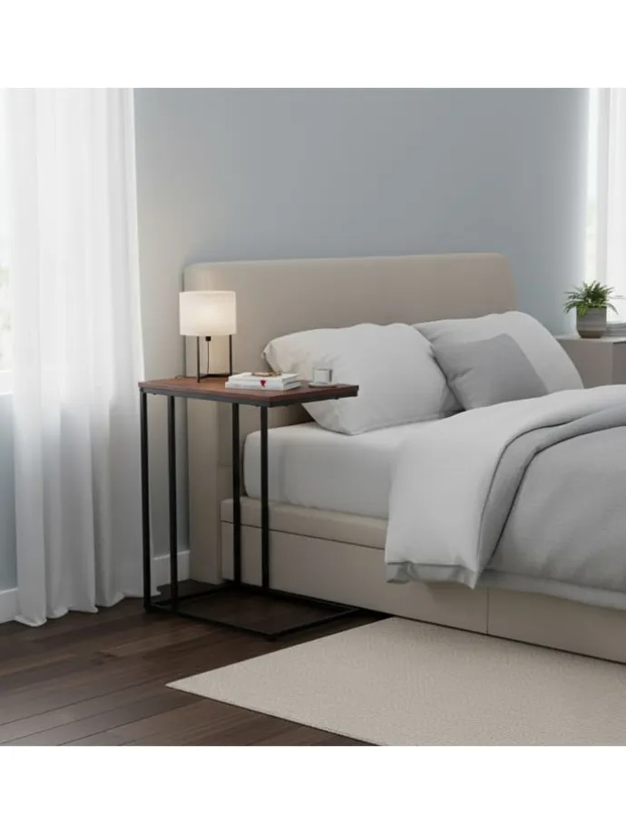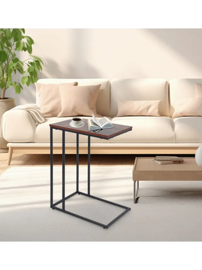 Ob als Sofatisch im Wohnzimmer oder als Nachttisch im Schlafzimmer, dieser Anstelltisch schafft eine praktische Ablagefläche für Bücher, Dekoartikel, Snacks und mehr. Dank der platzsparenden C-Form lässt sich der Kaffeetisch zudem perfekt unter die Couch oder das Bett schieben. Optisch überzeugt der Ablagetisch im Industrial-Design mit seiner dekorativen Kombination aus einer Tischplatte in Holzoptik und einem unifarbenem Metallgestell.