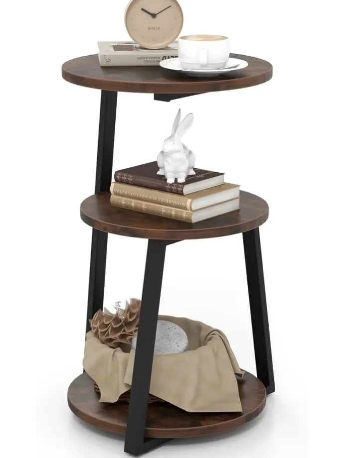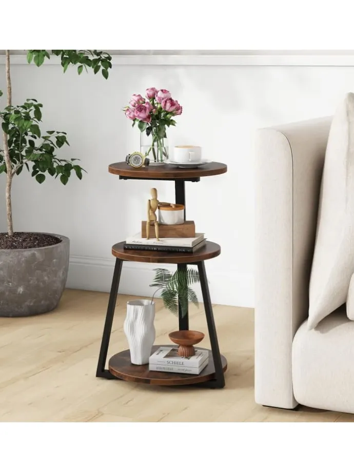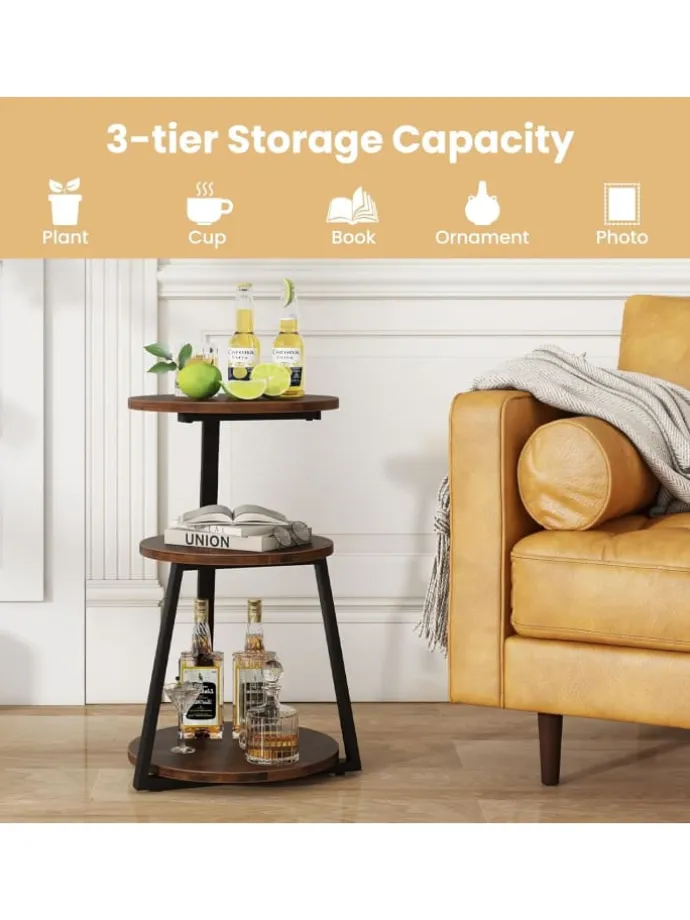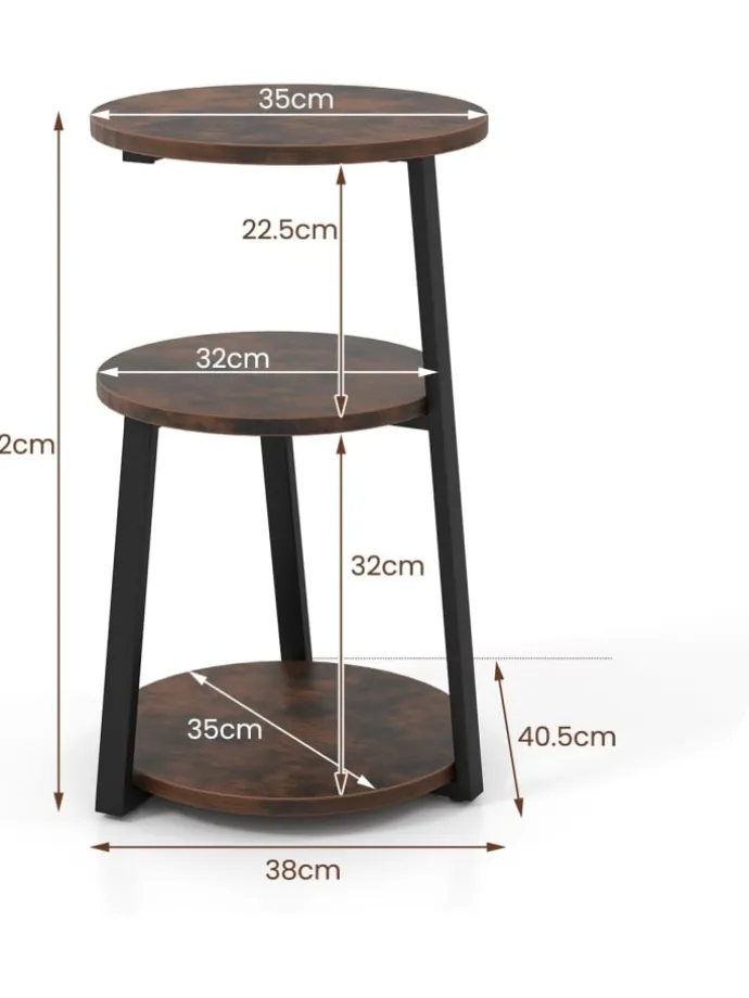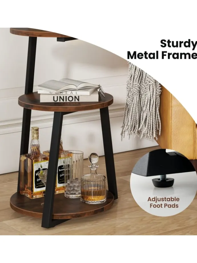Erhöhen Sie Ihren Raum mit dem 3-stufigen Beistelltisch, einem Aufbewahrungshafen, der Funktionalität und Stil vereint. Dieses aus Metall gefertigte Stück verfügt über eine großzügige obere Oberfläche und 2 offene Regale, perfekt zum Verstauen von Büchern, Dekorationsartikeln oder Ihren Lieblings-Snacks. Sein robuster Metallbau verspricht Langlebigkeit, während verstellbare Fußpads eine stabile Standfläche auf jedem Boden bieten. Das industrielle Design passt nahtlos in verschiedene Raumästhetiken. Die Montage ist ein Kinderspiel, und die Pflege ist so einfach wie ein schnelles Abwischen mit einem Tuch.