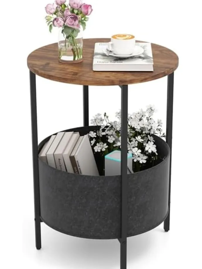 Unser vielseitiger Beistelltisch verfügt über eine geräumige, runde Tischplatte mit 44 cm Durchmesser und einen abnehmbaren Filzkorb darunter zur Lagerung einzelner Gegenstände. Er wird von einer robusten Metallstruktur mit X-förmiger Basis und verstellbaren Fußpolstern getragen und kann bis zu 30 kg stabil tragen. Mit seinem multifunktionalen Design kann er als Beistelltisch, Nachttisch oder dekorativer Akzenttisch verwendet werden und hat Gesamtmaße von 44 cm x 61 cm (Durchmesser x Höhe). Er wertet nicht nur Ihre Heimdekoration auf, sondern seine schlanke und platzsparende Konstruktion passt auch nahtlos in jeden Raum und macht ihn ideal für kleine Räume wie Wohnzimmer, Schlafzimmer oder Arbeitszimmer.