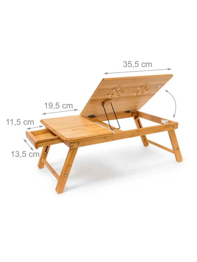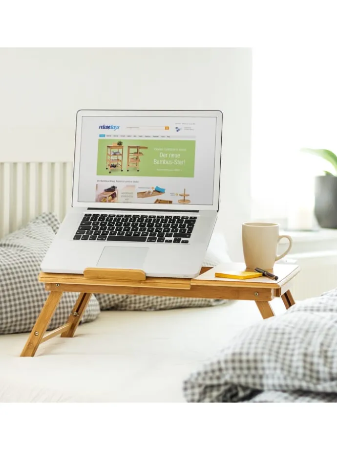 Auch als Frühstückstablett oder Buch- bzw. Tabletstütze macht der Laptoptisch eine gute Figur. Bei Bedarf können Sie die Beine einfach einklappen und ihn platzsparend verstauen.