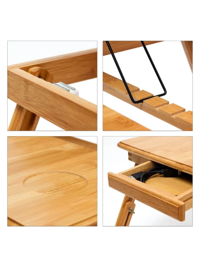 Details des Bambus Betttabletts mit Leseklappe höhenverstellbar