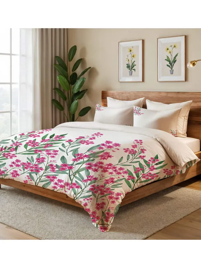Bettwäsche-Set in Pink/ Grün/ Weiß