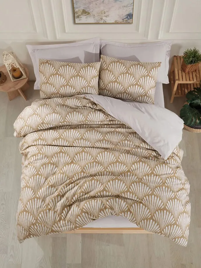 Bettwäsche-Set „Yelpaze“ in Hellbraun/ Weiß
