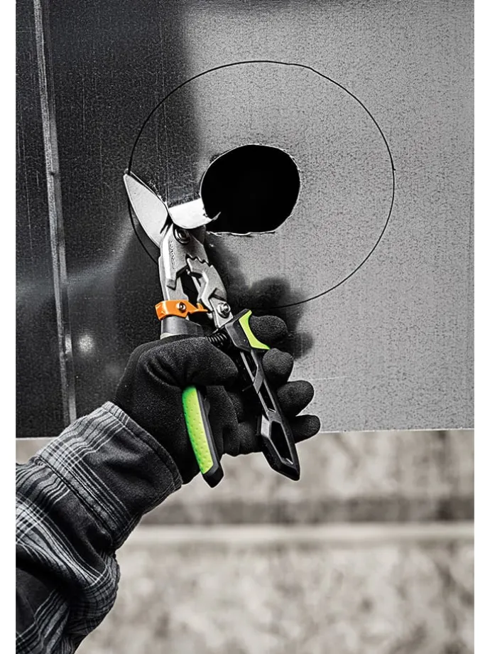 – versetzte Klingen ermöglichen Schnitte durch die Mitte des Bleches