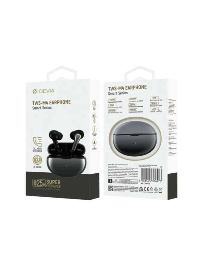 Devia M4 sind In-Ear-Bluetooth 5.2 TWS-Ohrhörer mit einer Ladebox. Die Ohrhörer unterstützen die TWS-Technologie (True Wireless Stereo) – beide Ohrhörer werden miteinander verbunden, um ein kabelloses Stereoset zu bilden. Eine tragbare Box mit eingebautem Akku ermöglicht es Ihnen, die Kopfhörer zusätzlich zur Ladefunktion sicher in Ihrer Tasche oder Ihrem Rucksack zu verstauen. Sie haben die Hände frei und können Musik oder Internetradio hören, während Sie arbeiten, laufen, trainieren oder Auto fahren. Die Devia M4 TWS-Kopfhörer sind eine ideale Lösung für Nutzer von Smartphones, Computern, Notebooks, Tablets und anderen Bluetooth-fähigen Geräten. Sie sind mit den meisten Android- und iOS-Geräten kompatibel. Die Ohrhörer verfügen auch über ein Mikrofon, so dass Sie problemlos Sprachanrufe tätigen können. Dank der energiesparenden Bluetooth 5.2-Technologie beträgt die Gesprächsdauer bzw. die Dauer des Musikgenusses mit einer vollen Ladung ca. 300 Minuten (je nach Lautstärke).