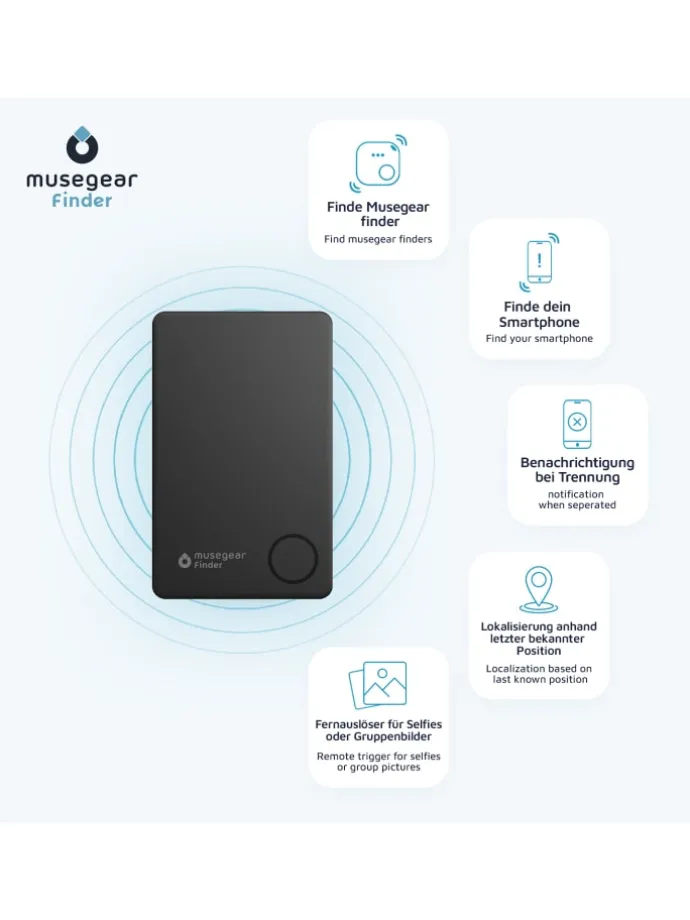 Egal ob Wohnungsschlüssel, Autoschlüssel, Geldbeutel, Smartphone, Fernbedienung, Tablet oder Handtasche. Mit dem innovativen und höchst effizienten musegear Tracker findest Du alles in Sekundenschnelle wieder.