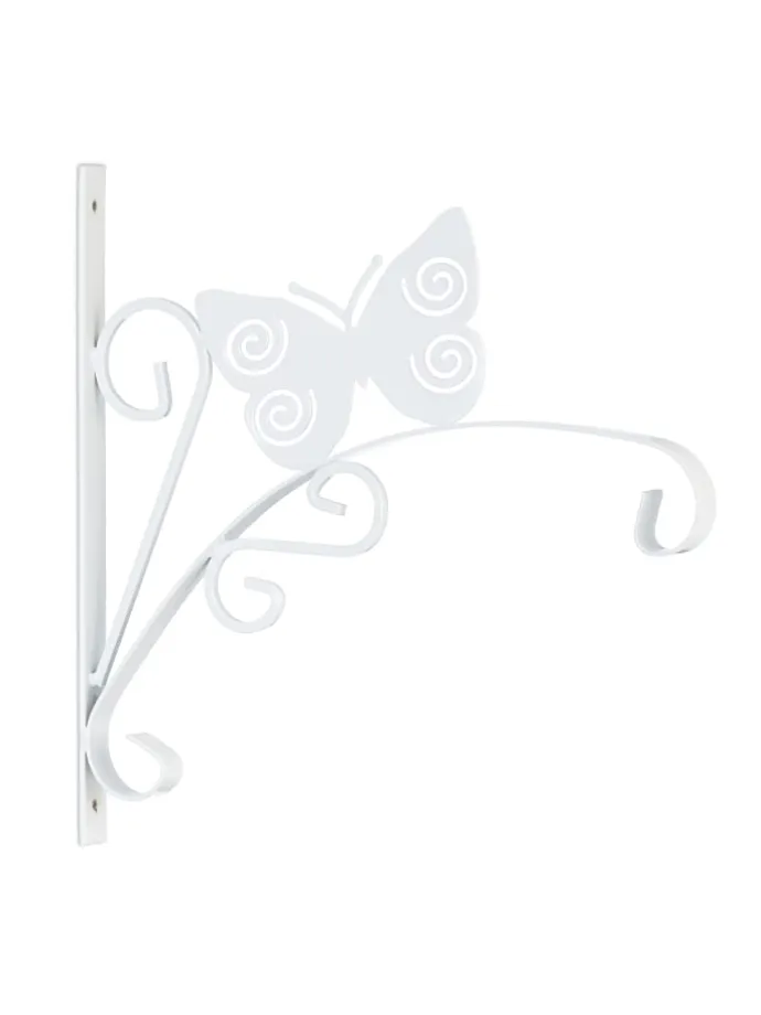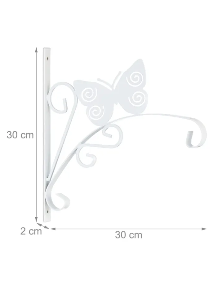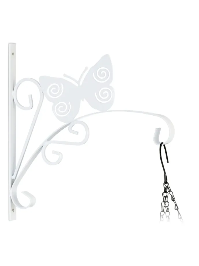 Mit dieser schicken Blumenampelhalterung kannst Du Deine Pflanzen und Blumentöpfe dekorativ in Szene setzen. Der Ampelhalter mit den geschwungenen Ornamenten und dem Schmetterling eignet sich hervorragend für Deinen Balkon oder Garten, kann aber auch in der Wohnung genutzt werden. Laternen, Windspiele oder Blumenkränze kannst Du ebenso an dem Wandhaken präsentieren. Die Pflanzenaufhängung aus Eisen kann mithilfe des beiliegenden Montagematerials schnell an der Wand befestigt werden.