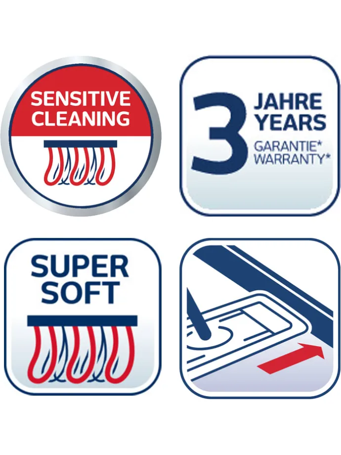 – einfache Bedienung mit dem Fuß für rückenschonendes Putzen
