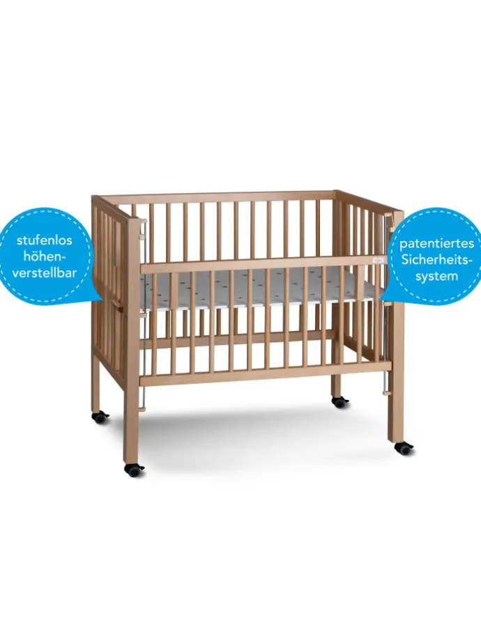 – Kinder nie unbeaufsichtigt im Beistellbett spielen lassen
