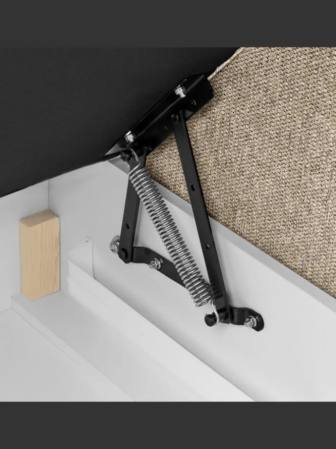 Ausgezeichneter Komfort durch gleichmäßige Gewichtsverteilung, Elegantes Design, Stabile Konstruktion des Gestells, Hochwertiges Material, Dank des wasserabweisenden Finishs perlen verschüttete Flüssigkeiten von der Oberfläche ab, Leichtes Öffnen des Bettkastens dank Gasdruckfedermechanismus