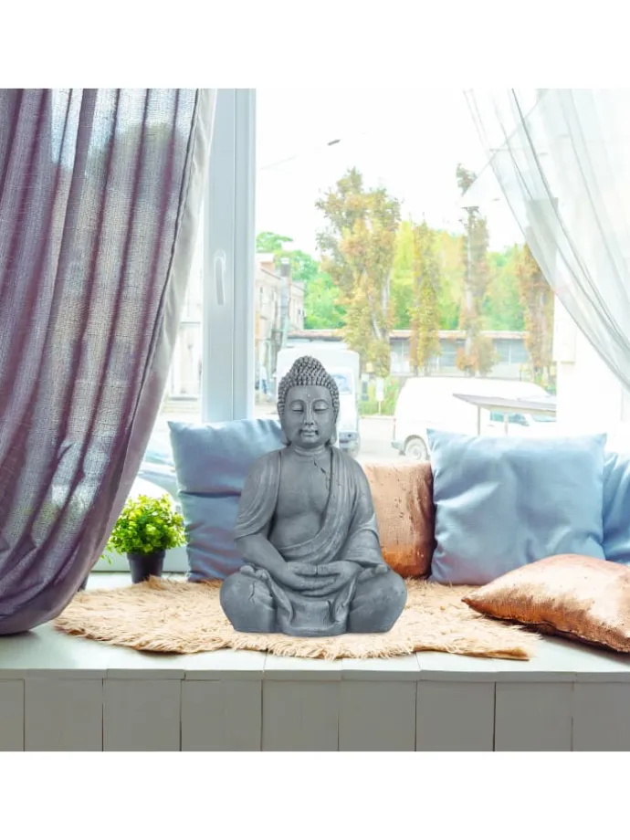 Die große Statue zeigt den sitzenden Buddha in Meditationshaltung, ein Talisman für Glück und Erkenntnis. Die spirituelle Dekofigur verschönert Balkon, Terrasse und Garten und macht sie zu Deinem persönlichem Wohlfühlort. Aus hochwertigem Polyresin ist die Buddha Figur dank ihrer wetterfesten und frostsicheren Eigenschaften bestens für den Outdoorbereich geeignet. Aber auch im Wohnzimmer oder im Bad ist die Skulptur ein besonderer Blickfang, der Ruhe und Kraft ausstrahlt.