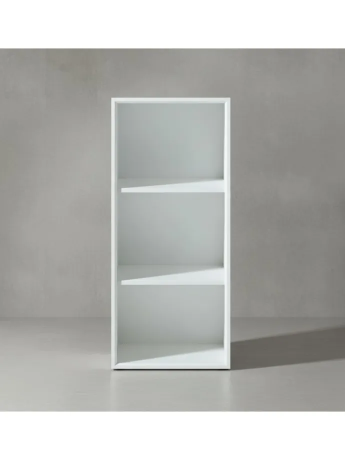 1x Aktenregal (Midi): Offene Fächer für schnellen Zugriff, 2 feste Böden, Glas-Oberboden.