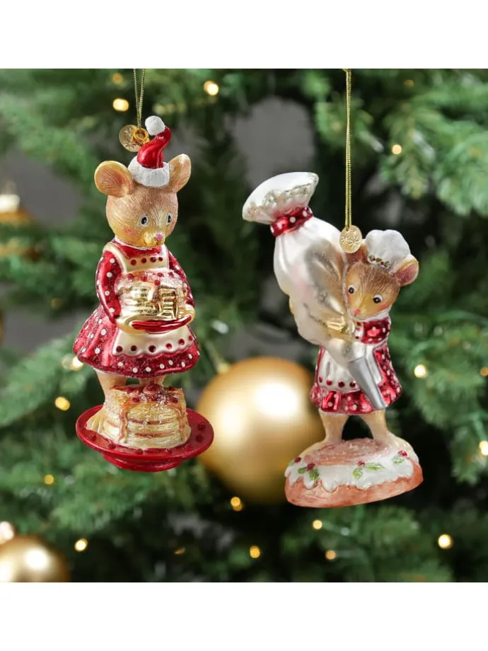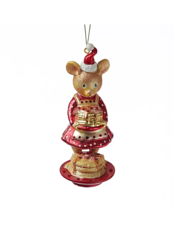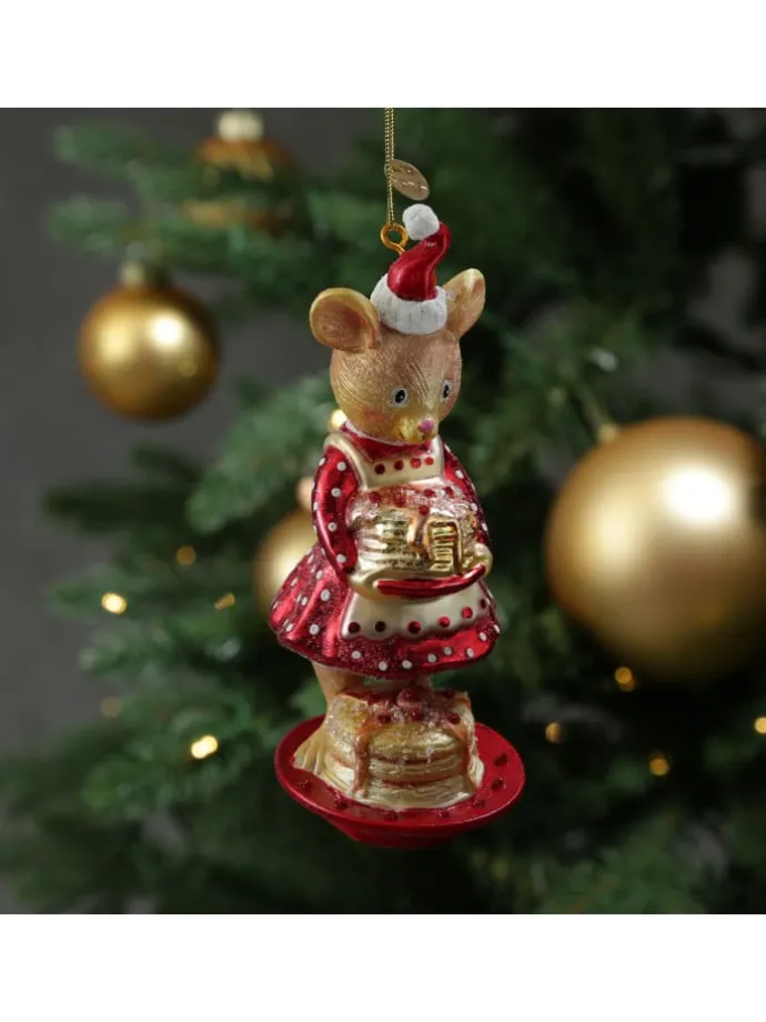 Weihnachtsbaumschmuck Mäuschen mit Pfannkuchen – Christbaumschmuck – Glas – H: 15cm – rot Tauche ein in die zauberhafte Welt unserer Weihnachtsbäckerei mit dem Weihnachtsbaumschmuck Mäuschen mit Pfannkuchen!