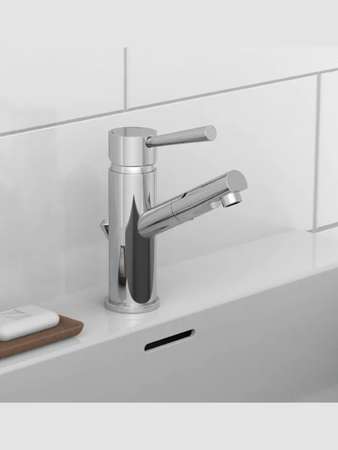 Die Waschbeckenarmatur verfügt am Auslauf über ein drehbares Endstück für einen erweiterten Aktionsradius und flexible Einsatzmöglichkeiten.