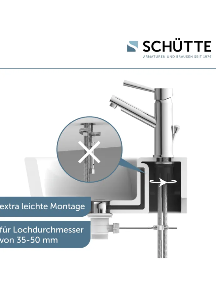 Abgerundet wird die Badarmatur durch ihre einfache Montage. Die mitgelieferte Zentralverschraubung ist praktisch, selbsterklärend und kann ohne Fachkenntnisse schnell umgesetzt werden.