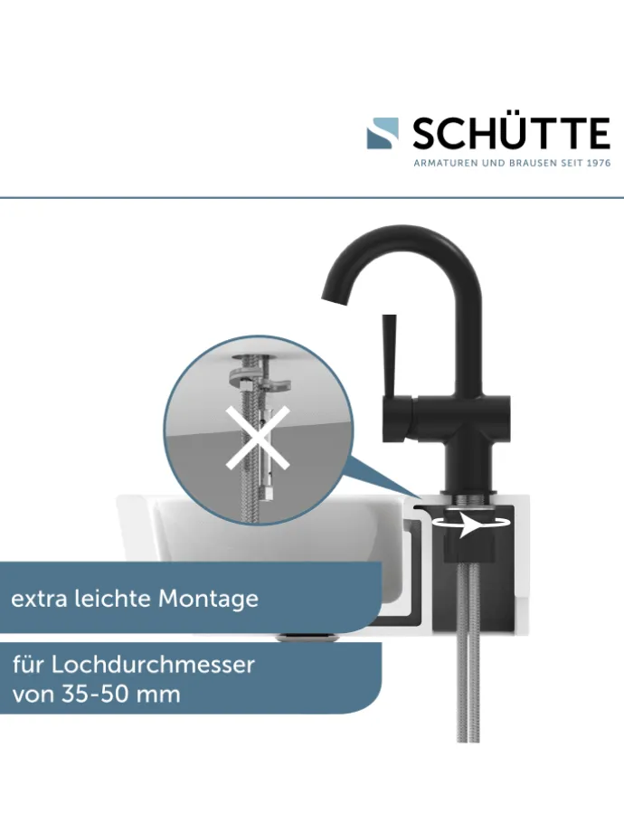Abgerundet wird die Badarmatur durch ihre einfache Montage. Die mitgelieferte Zentralverschraubung ist praktisch, selbsterklärend und kann ohne Fachkenntnisse schnell umgesetzt werden.
