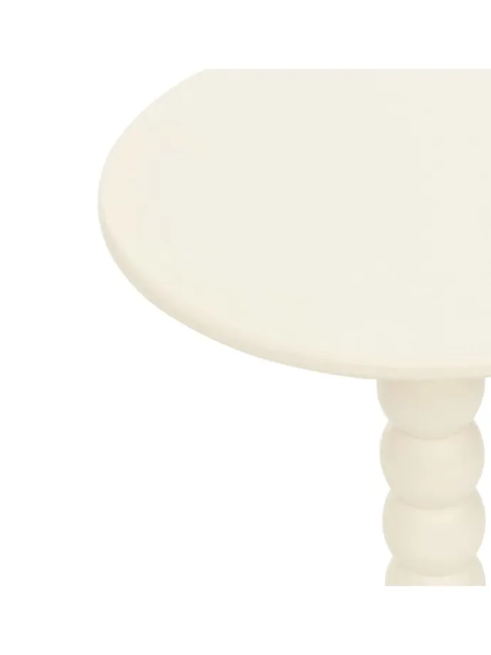 Einzigartige Konstruktion: Der Tisch verfügt über eine glatte, matte Tischplatte und Beine in Form von Perlen, gefertigt aus MDF und Kiefer, was ihm einen besonderen Charakter verleiht.