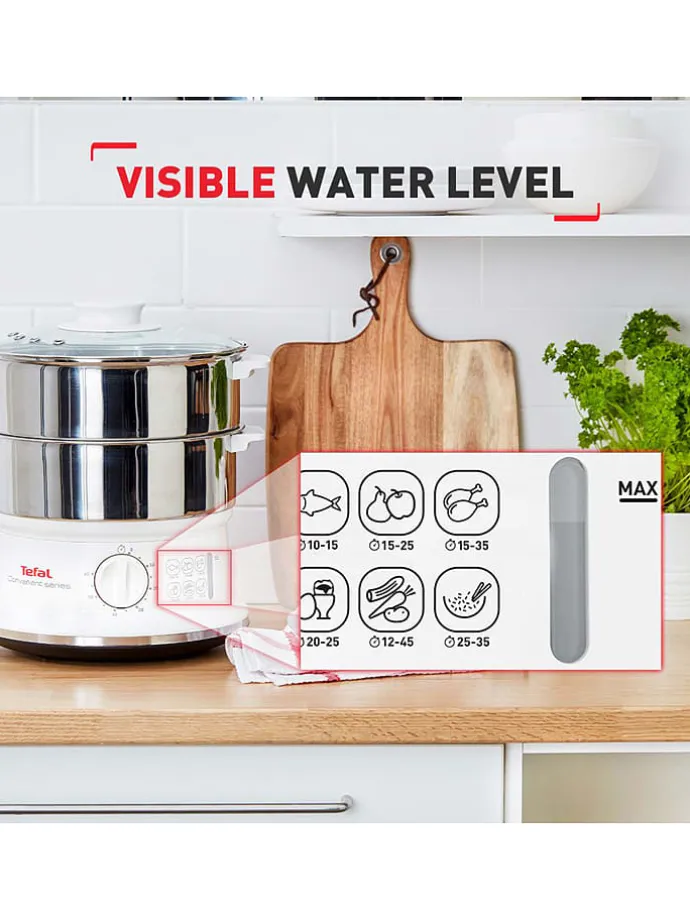 – der Dampfgarer kann während des Kochens jederzeit aufgefüllt werden, dank der externen Wassereinfüllöffnung