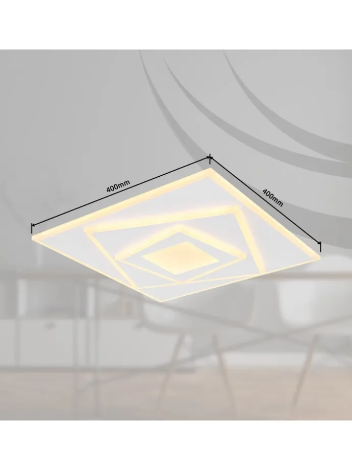 Deckenleuchte Metall weiß, Acryl opal, LxBxH: 400x400x54mm, inkl. LED 24W 230V, 3000lm Source, 2100lm Output, 3000K