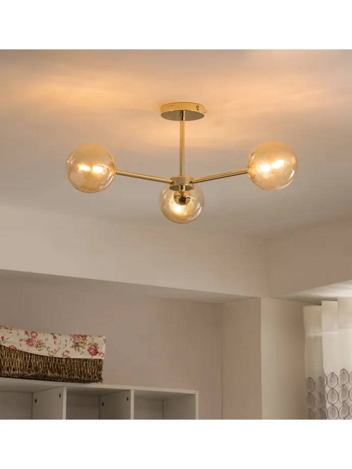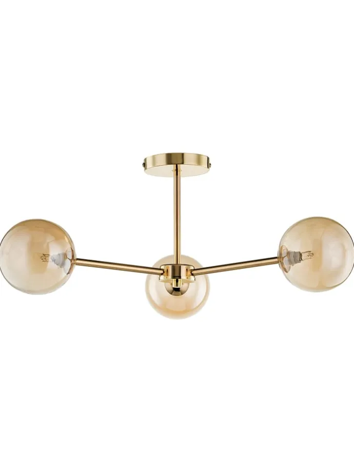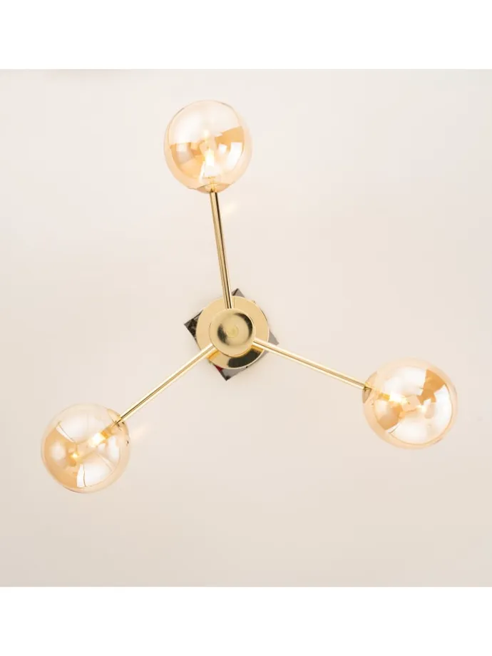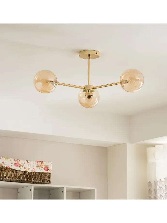 Diese zentrale Raumbeleuchtung verleiht Ihrem Wohnbereich mit ihren hitzebeständigen Glaskörpern eine glanzvolle Optik. Das stabile Metallgestell ist mit einem hochwertig vergoldeten Baldachin ausgestattet, der für eine edle Note sorgt. Die 3-flammige Deckenleuchte garantiert eine helle und gleichmäßige Ausleuchtung Ihrer Räumlichkeiten. Ein wohlproportioniertes Lichtelement, das sowohl funktional als auch dekorativ überzeugt.