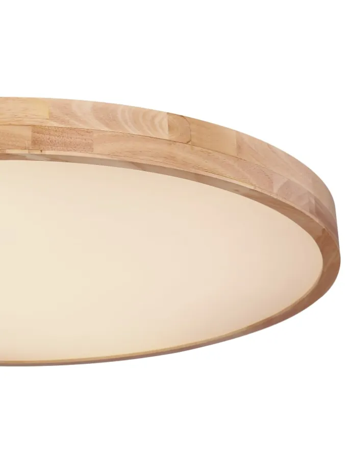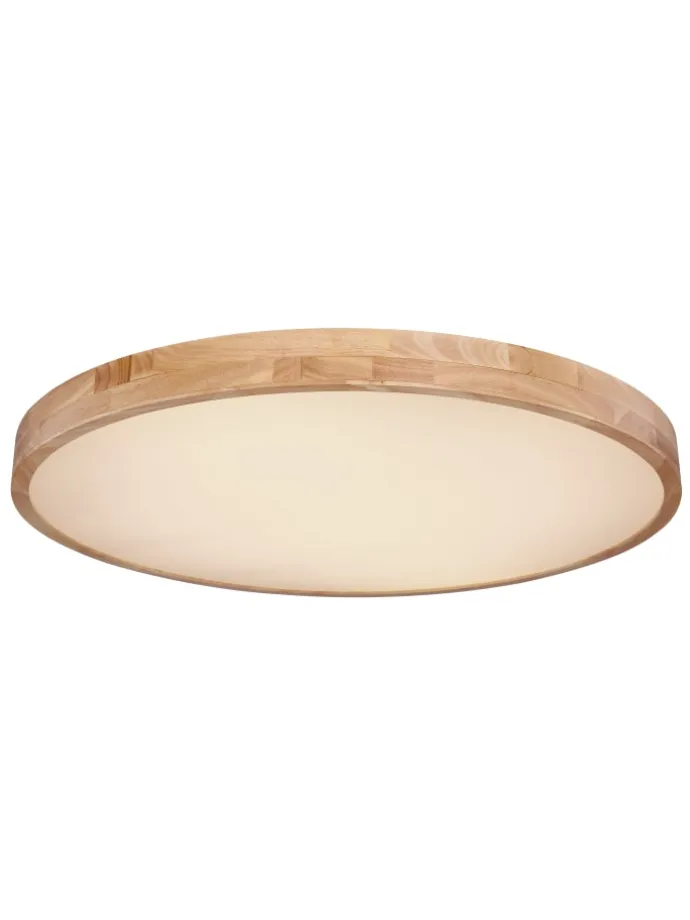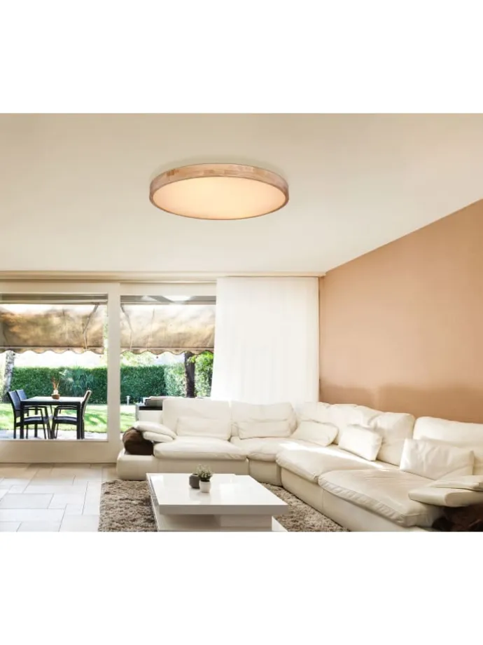 Deckenleuchte Metall holzoptik, Kunststoff weiß, dimmbar, mehrere Stufen über Wandschalter, Farben fixierbar, Memoryfunktion, Nachtlicht, Fernbedienung, Batterie inkludiert 2x AAA, ø: 800mm, H: 105mm, inkl. LED 60W 230V, 550-7000lm Source, 300-2600lm Output, CCT 3000-6000K