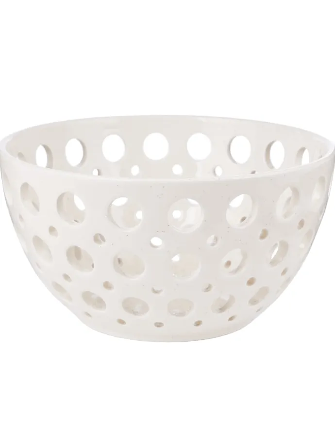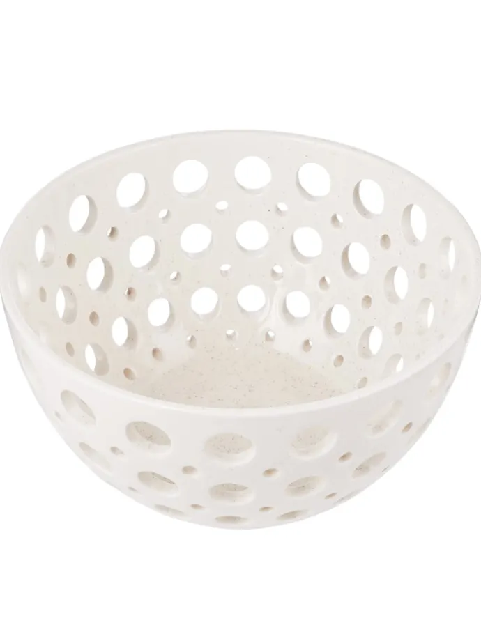Hübsch anzuschauen ist die Review Deko Schale mit Lochmuster aus Dolomit. Ohne Inhalt kommt das Lochmuster der zart gesprenkelten Schale natürlich am besten zur Geltung, und dennoch lässt sie sich z.B. zum Ablegen und Aufbewahren von Schlüsseln, Ladekabeln etc. nutzen. Oder du inszenierst die runde Schale mit Deko-Elementen wie z.B. Tannenzapfen, Ostereiern etc. In zwei Farbvarianten erhältlich.