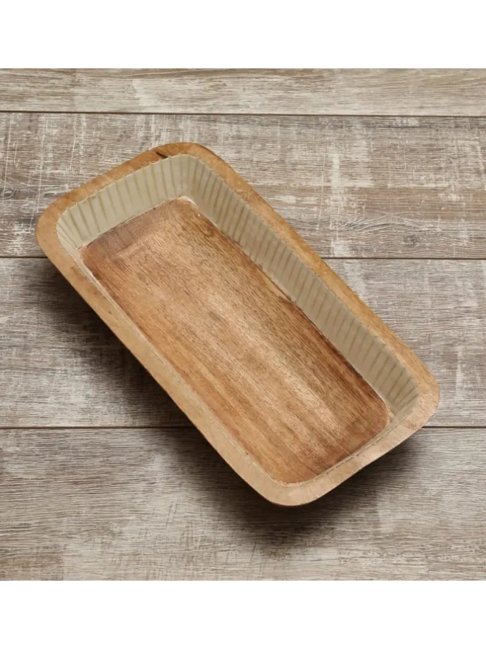 Dekoschale – rechteckig – Mangoholz – L: 40cm – H: 7,5cm – natur, weiß Die naturfarbene und mit weißem Rand versehene Dekoschale aus Holz ist genau richtig zum Dekorieren. Kerzen und andere Dekoration sehen auf dem Tablett einfach genial aus.