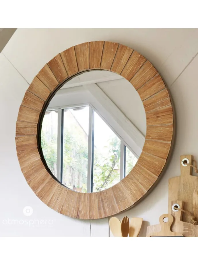 Praktische Abmessungen: Der Spiegel mit einem Durchmesser von 83 cm und einer Dicke von 3,5 cm passt perfekt in verschiedene Räume und sorgt so für eine proportionale und praktische Reflexion. Der Durchmesser der Spiegelpfannen von 57,9 cm sorgt für eine angenehme Reflexion