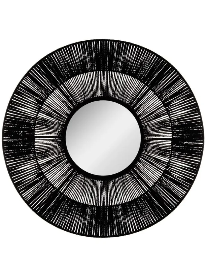 Der Spiegelrahmen ist aus strapazierfähigem und fehlerbeständigem Metall gefertigt. Das Produkt hat einen Durchmesser von 76 cm. Universelle, schwarze Farbe passt zu Innenräumen, die in fast jedem modernen Stil eingerichtet sind. Der Spiegel wird in jedem Raum geeignet sein: Schlafzimmer, Wohnzimmer oder Ankleideraum.